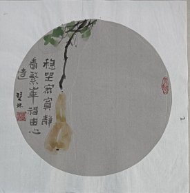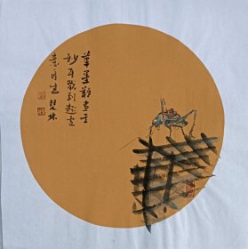 书画名家笔墨真迹,著名禅意书画家贾双林扇面花鸟作品:静观诸物