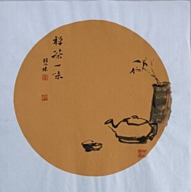书画名家笔墨真迹,著名禅意书画家贾双林花鸟作品:禅茶一味