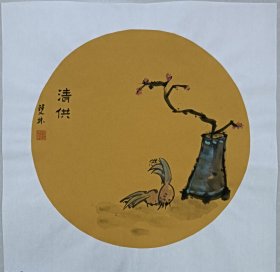 书画名家笔墨真迹,当代著名禅意书画家贾双林花鸟作品:清供