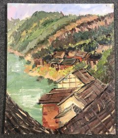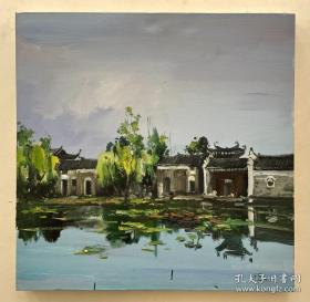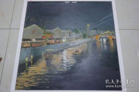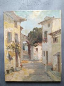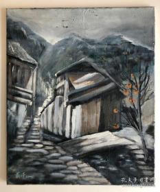 老油画:带框布面油画小桥流水人家