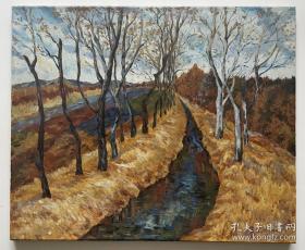 名家带原框布面油画《乡村的小路》