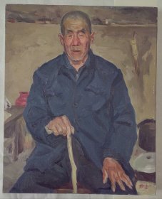 陈丹青 布面油画带框 人物 老农民