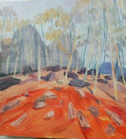 王路 大幅风景布面油画,手绘,带内框