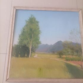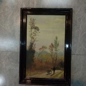 老油画:带框布面油画风景人物