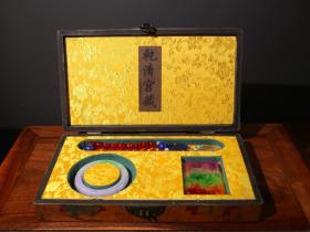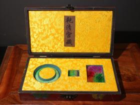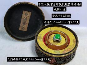 珍藏珍品旧藏收罕见清代宫廷御藏极品绿宝石手镯戒指手饰一盒 硬度可达9级 工艺精湛 款式精美 配老漆器盒 手镯重120克 内径6.0厘米 戒指重15克