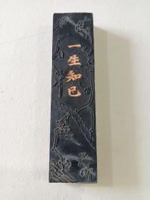 私人家珍藏版五六十年代徽记胡开文墨厂 光绪戍子知足斋藏烟《一生知已》纯烟墨条一支,上面印有花卉图案,未曾使用,可珍藏馈赠展示,使用一体的收藏珍品,值得珍藏,非常好看漂亮