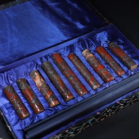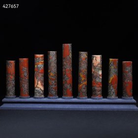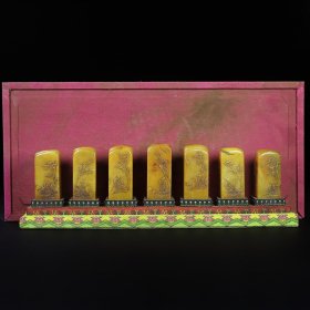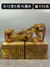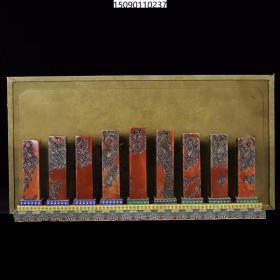 寿山珍品 珍藏寿山石九龙柱薄意圆印章一套,九龙印章尺寸约为:长3.4厘米宽3.4厘米,高(最低13厘米、最高18.8厘米)左右,净重2800克