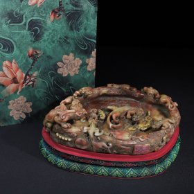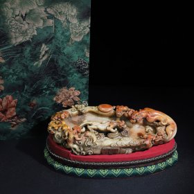 典藏珍品 珍藏寿山石浮雕麒麟螭龙献瑞笔洗摆件,净长30厘米宽19厘米高7厘米,净重3948克,价格11000元,搭配布盒与底座,代理加价,运费自理!
