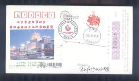北京寄成都明信片,盖:北京市老年集邮会第四届西站文化杯集邮展览.庆祝北京老年集邮会成立廿周年2007.9.7-8.纪念戳