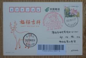实寄片 中国邮政贺年有奖明信片 邮资80 盖祝“中国2009世界集邮展览”成功举办纪念戳两枚 盖2009年邮戳