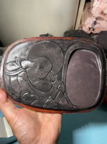 红木原盒福禄万代坑仔端砚