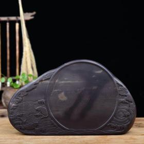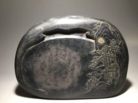 旧藏端砚坑仔料: 锦江春色 石质细腻、温润,石眼清晰,做工精良,雕工大气,刀法纯朴,包浆浑厚老辣! 尺寸:长22.5cm宽16.5cm高4cm