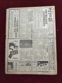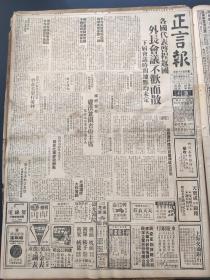 民国原版老报纸:正言报1945年10月4日 各国代表启程返国,外长会议不欢而散,下届会议时间,地点均未定。国府任命,庐汉兼滇省府主席,龙云改任军事参议院长。从严惩奸伪说到肃清奴化思想。翁副院长发表,复员与经济政策。国共谈判之意义。行政委会调集轮支,最近期内恢复通航,行驶温甬暨长江各口岸。沦陷区银钱业现况及其批判。