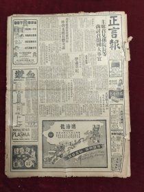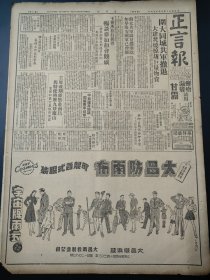 民国三十五年九月正言报1946年9月15日司徒大使贺国光湖北口淮阴蒋兼团长荣大祥宏大橡胶厂红金香烟安全油炉恒義升青年团二全会嗯很好傅秉常台省汉城萧山象山胡文虎消治龙牙膏鹅根如意牌汉口南京苏州震日博物院暨大中国新戏剧运动大佛寺太湖金龙白蜜皂一字牌香烟