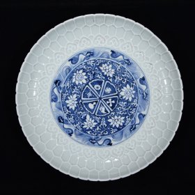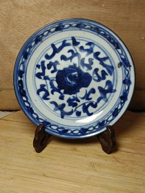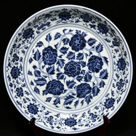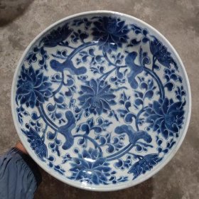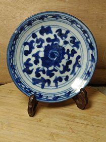 清代青花缠枝莲纹盘。