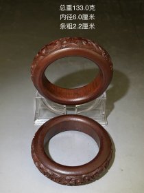 缠枝莲纹牛角手镯一对。