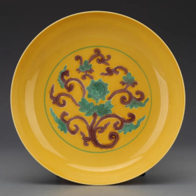 明黄地缠枝纹碟