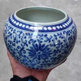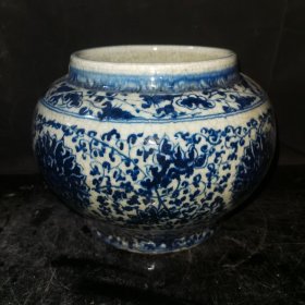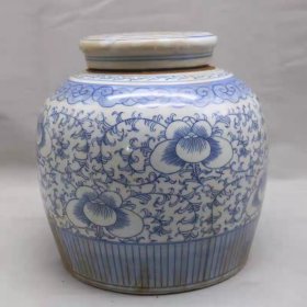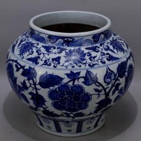 青花手绘缠枝花卉纹大罐