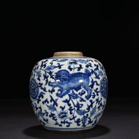清末青花缠枝狮子纹罐