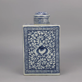 青花缠枝纹四方茶叶罐