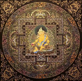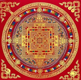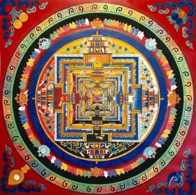 唐卡,【精品时轮金刚坛城】 曼陀罗 《时轮金刚》坛城。尺幅100×100CM,作品由成名画僧持咒在棉布上纯手工绘制,天然颜料着色,画工精细,作品颜料选用传承唐卡颜料,色系饱满艳丽,装裱后更是高端大气。