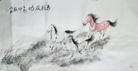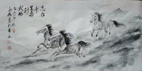 艺术名家国画骏马图,手绘精品,画面生动,3匹骏马在草原上驰骋,寓意马到成功,气势磅礴,动感十是。尺寸3尺整张,适合客厅、办公室装饰,也可作为礼品赠送。画芯未装裱。马年临近,喜欢的朋友可结缘。