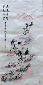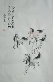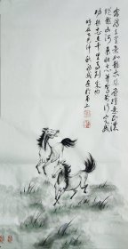 艺术名家奔马图,纯手绘国画,题款:奔腾千里气如龙,乘风飞跃意正浓。纵越山河展壮志,并驾前行定成功。尺寸三尺整张,全新未装裱,原图发货,低价出售。马年临近,欢迎结缘!