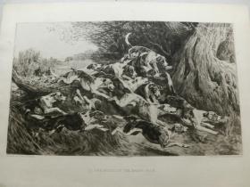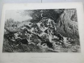 【百元包邮】《闻声出击的猎犬》(THE MUSIC OF THE EAGER PACK) 1892年 蚀刻版画 源自艺术日志 纸张尺寸约32×23厘米(编号AJ0333)
