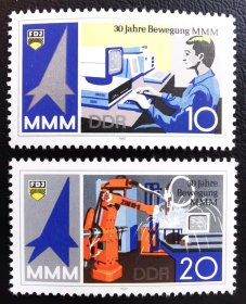 14A东德1987年邮票。未来技师作品展览30周年。2全新