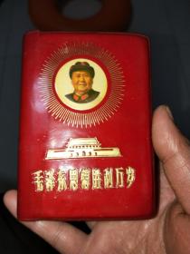 稀缺本 **红宝书 掌中宝《毛主席诗词~注解》毛主席金色五角星头像封面金光闪闪 书内彩色照片24张 插图与毛主席诗词插图超多 辽革站 北国风光