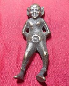 旧黄铜大肚脐大耳人物像保真品铜制器