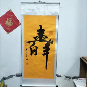 百寿 日本回流书法轴 绢本纸裱 木轴 尺寸 165Cm x52Cm.耒自广州博物馆 [火]送人的一幅,笔韵深厚。回流书画色斑,折痕,年久自然旧,不可避免,请勿求完美,请出不退换。