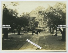 1929年9月左右山东省曲阜城大成殿老照片,其建筑规模宏大、雄伟壮丽、金碧辉煌,为中国最大的祭孔要地。附当时文字信笺,记录了百年前一位女子游览孔庙的真实经历和感受。照片8X6.5厘米,泛银。
