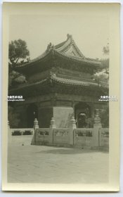 民国时期山东曲阜孔庙,在楷亭北、孔子墓道东侧德高台上最北的宋真宗驻跸亭老照片。14X8.6厘米,泛银。十分珍贵的是,民国时期亭子上的古建彩绘还十分清晰,历经百年,现代的已经模糊不堪了。(附今昔对比图)