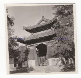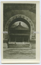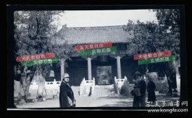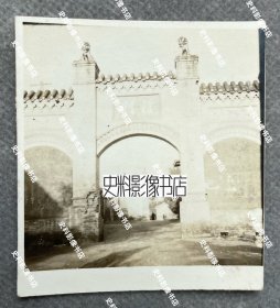 抗战时期 山西省长治县、长子县、平遥县、辽县(今左权县)一带文庙(孔庙)里的“礼门”等建筑 原版老照片一枚(可见大门上的“礼门”二字,上端雕刻有两尊石狮子,另可见对面的牌坊式建筑。)