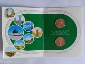 第十一届亚运会 特制纪念章卡册卡币一套 实物拍图