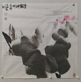 林海文国画1张 三香和会 保真 广东省书法家协会理事,广州市书法家协会理事