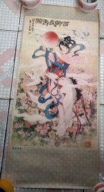 老年画工笔仕女1张 百龄长寿图 华三川绘尺寸 77x34cm瑕疵品处理