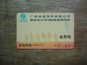 怀旧收藏--广东电信寻呼有限公司--新会支公司183电信寻呼台会员卡