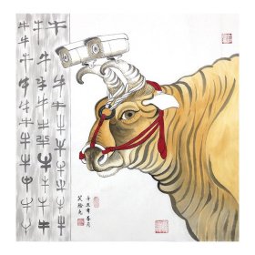 省美协会员邝祖海《牛》客厅装饰保真收藏送礼手绘国画带合影视频四尺斗方原稿真迹