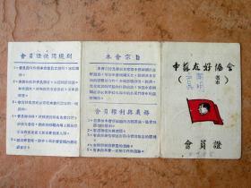 2张山东省荣城县中苏友好协会会员证 红色收藏 老票证 老证件 老资料