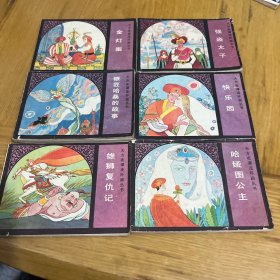 天方夜谭连环画丛书:(画中女郎、海石榴花、聪明的女奴、詹莎王子的奇遇、蛇女王、快乐园、强盗太子、金灯案、雄狮复仇记、银匠哈桑奇遇记、哈娅图公主、神王女儿)12本合售