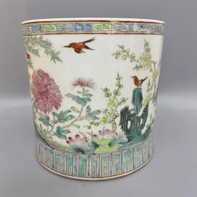 大清光绪年制粉彩花鸟大笔筒3