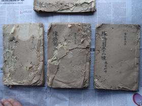 光绪木刻本 鼓词 绣像灯月传 存卷1--3三册 少卷4一册 前附木刻版画10幅 卷1--80多面全,卷2--前少1页后到52页全,卷3---存1--60页 后少1面。老补加封皮 如图
