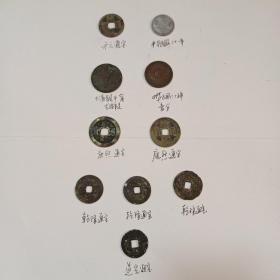 古钱10枚合售:开元通宝1枚,中华民国31年铝币一角1枚,大清铜币甯字光绪年造铜币1枚,中华民国25年1分铜币1枚,康熙通宝2枚,乾隆通宝3枚,道光通宝1枚