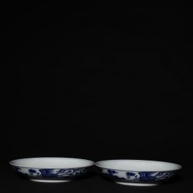 旧藏清代光绪青花对凤盘一对高度3cm,口径17cm,底径10cm。