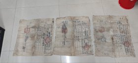 清地契3张。乾隆37年、光绪15年、宣统元年地契各一张。1张已托。
