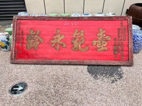 光绪三十四年晚清名臣张之洞题给李母王孺人七旬寿匾一片,壶范永龄4个大字,长215厘米宽87厘米,油漆解放后漆的,卖3万元。