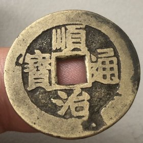 清朝顺治通宝铜钱,背浙,径2.65厚0.12厘米,字迹清秀深刻、皮壳古朴、原装原样(品如图)18号