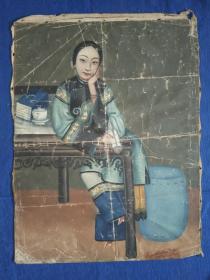 清末十三行出口老油画三寸金莲贵族仕女大家闺秀人物精品高档奢侈品老物件收藏怀旧影视道具家庭艺术陈设橱窗会所茶楼娱乐场所大型商超文化展示